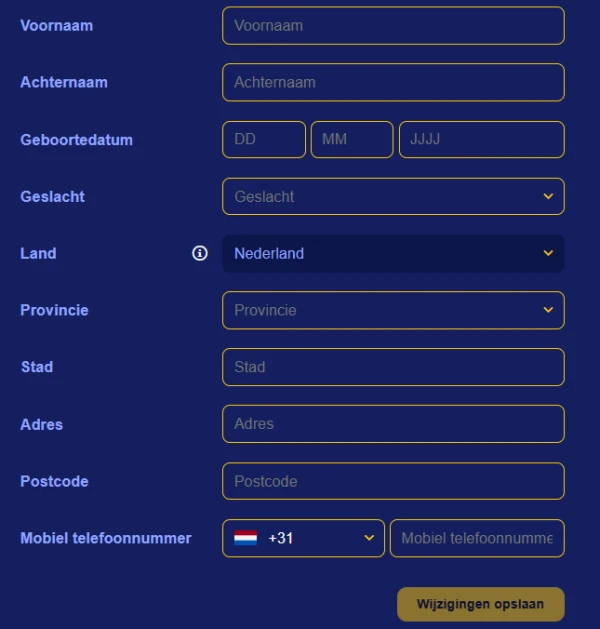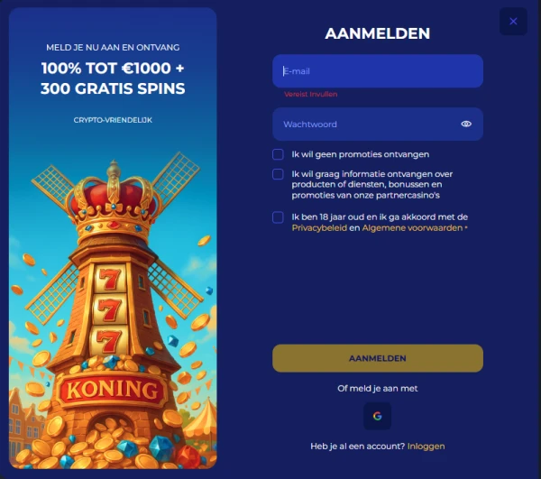 Ons aanmeldformulier is zo opgebouwd dat we de informatie verzamelen die nodig is om je profiel in te stellen en je account te beschermen. Vul tijdens Koning registratie je echte gegevens in, want die moeten overeenkomen met je verificatiedocumenten. Dit helpt ons ook om opnames sneller te verwerken zodra je account is goedgekeurd. Als je vanuit Nederland bij KoningCasino speelt, raden we aan EUR te gebruiken om stortingen en opnames eenvoudig te houden.