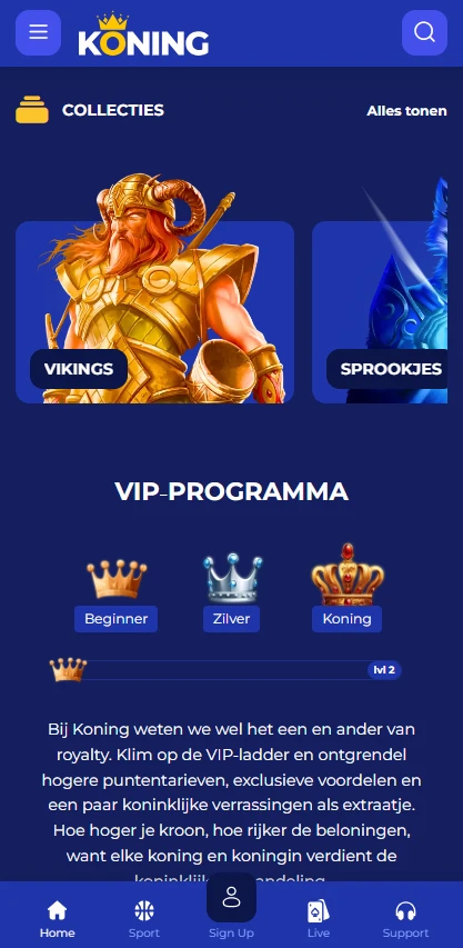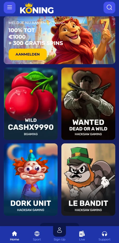 In Nederland bieden we mobiele toegang via ons browserplatform, dat je als een app op je startscherm kunt opslaan. Dit is een snelkoppeling in Progressive Web App-stijl, dus er is geen native iOS- of Android-applicatie om te installeren. Als je een pagina ziet die een Koning apk-download aanbiedt, gebruik die dan niet, omdat wij geen APK-bestanden aanbieden en geen app publiceren in Google Play of de Apple App Store. Onze officiële Koning app-ervaring wordt geleverd via de website, met hetzelfde account en dezelfde gamecatalogus.