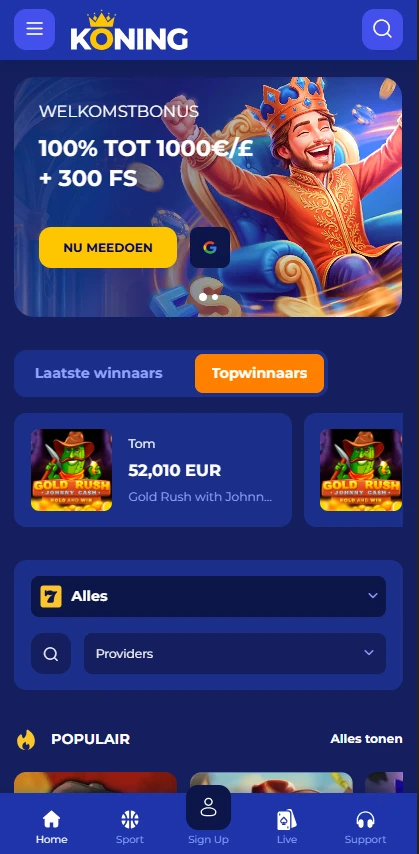 Onze mobiele oplossing houdt de volledige ervaring op één plek. Promoties, de volledige gamebibliotheek en accounttools zijn beschikbaar op mobiel, dus je hebt geen apart product nodig om te starten. Je profiel blijft gesynchroniseerd tussen apparaten, wat betekent dat je saldo, bonusstatus en recente games met je meegaan van telefoon naar desktop en weer terug. Voor veel spelers is dit de makkelijkste manier om KoningCasino te gebruiken zonder extra installaties.